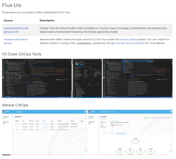 You can install the Weave GitOps UI using a Flux HelmRelease, please see the Weave GitOps documentation for more details. - The Flux community maintains a series of Grafana dashboards for